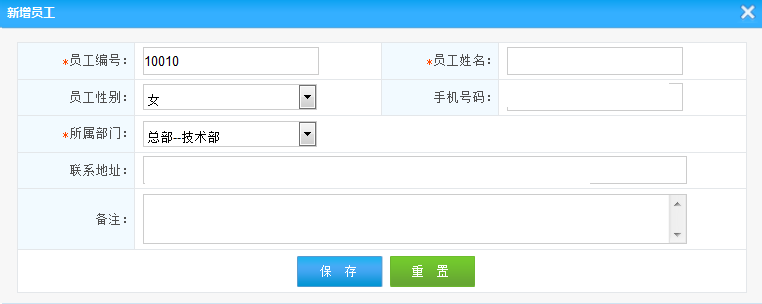 5.所屬店鋪:選擇新增的員工隸屬于哪個部門