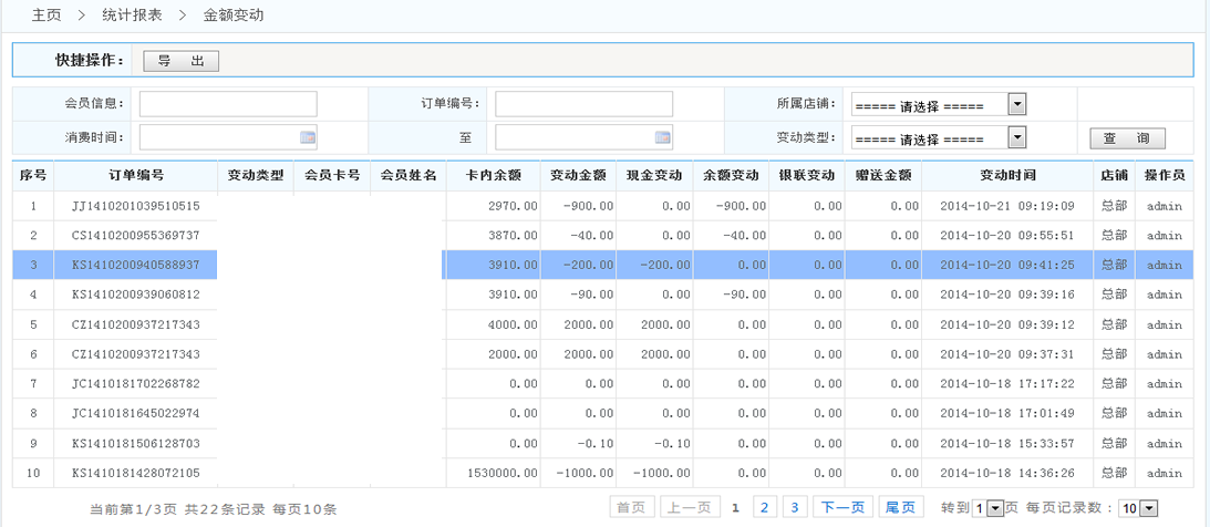 五通一卡通云會(huì)員管理系統(tǒng)金額變動(dòng)統(tǒng)計(jì)