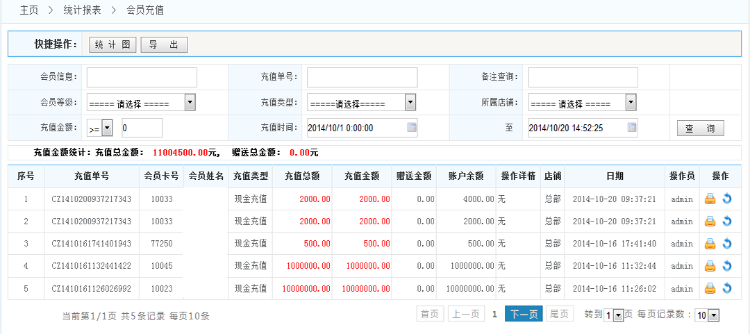 五通一卡通云會員管理系統(tǒng)充值統(tǒng)計