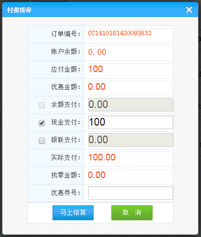 先會員刷卡定位到會員,然后輸入商品的名稱或簡碼或者掃描槍快速定位查找商品;或先會員刷卡,然后輸入充次項目編碼或簡碼查找服務(wù)項目;或者直接點擊服務(wù)項目;選擇服務(wù)項目后點擊結(jié)算此訂單如圖顯示: