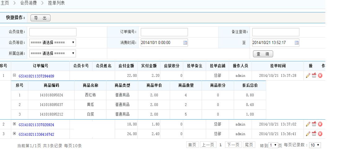 可根據(jù)會(huì)員信息、訂單編號(hào)、掛單時(shí)間等信息查詢(xún)特定的掛單記錄;