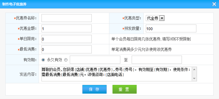 有效日期:可以使長久有效,也可單獨設(shè)置時間段